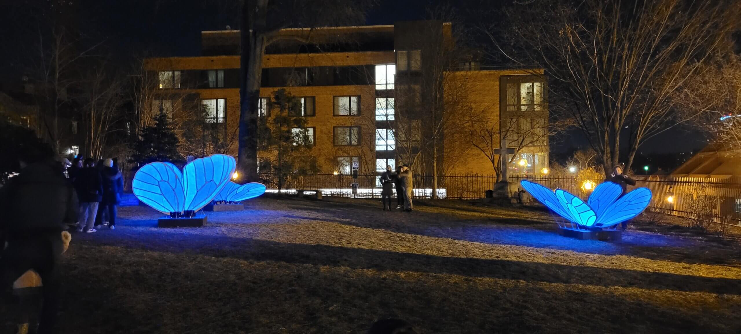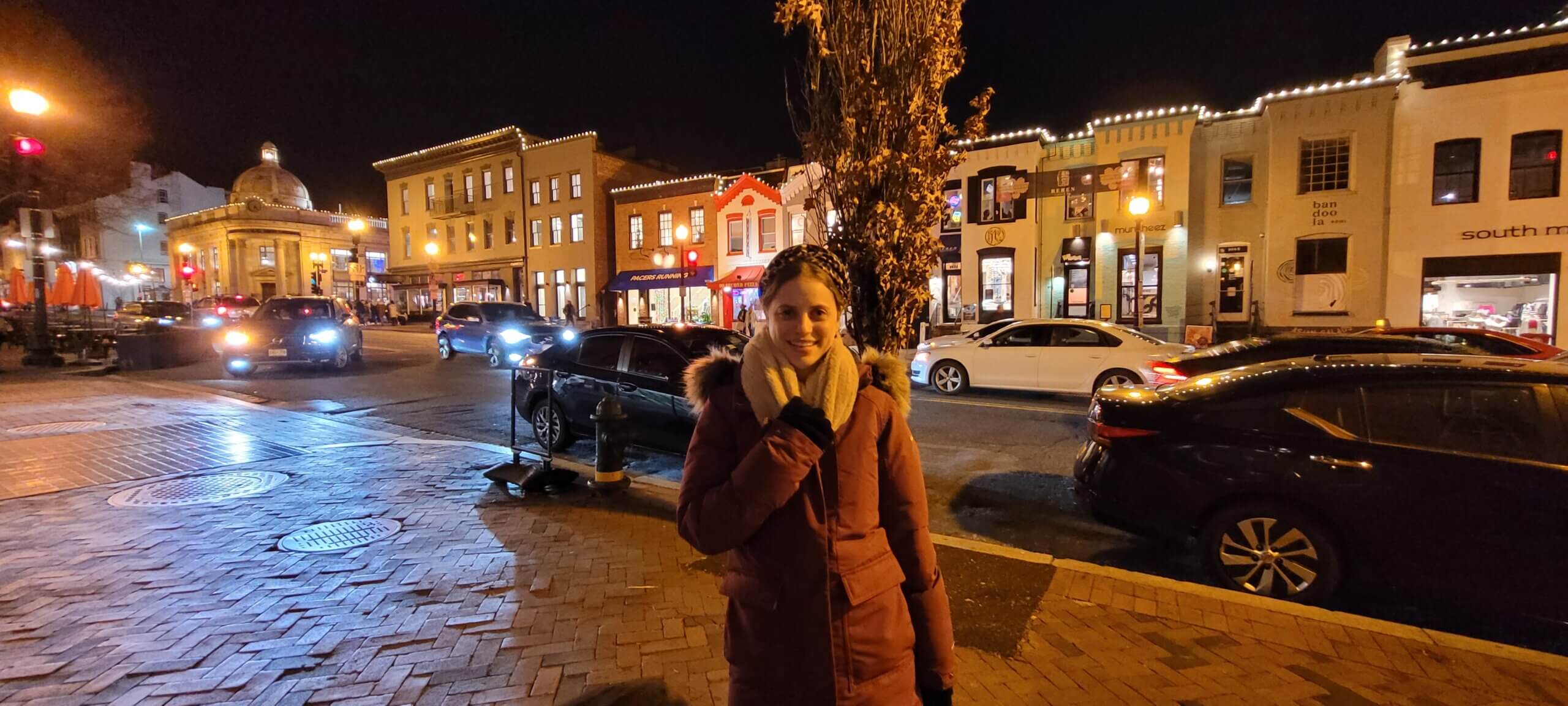 כשחזרנו לעיר עברנו דרך ג׳ורג׳טאון (אמרו לנו שיש איזה באזאר… לא הצלחנו למצוא אותו, כנראה לא מתקיים בחורף) השכונה היתה מוארת ויפה החלטנו לרדת ולעשות סיבוב. הלכנו על רחוב ויסקונסין, נכנסנו לחצר שהיה בה מיצג אמונתי של פרפרי ענק מוארים, הצטלמנו עם תאורה יפה וקנינו מזכרות יפות של העיר: מגנט למקרר שמצטרף לאוסף היפה שהצטבר כבר ושני ספלים מהממים עם חריטה של המקומות המוכרים: הקפיטול, הבית הלבן והאנדרטאות.