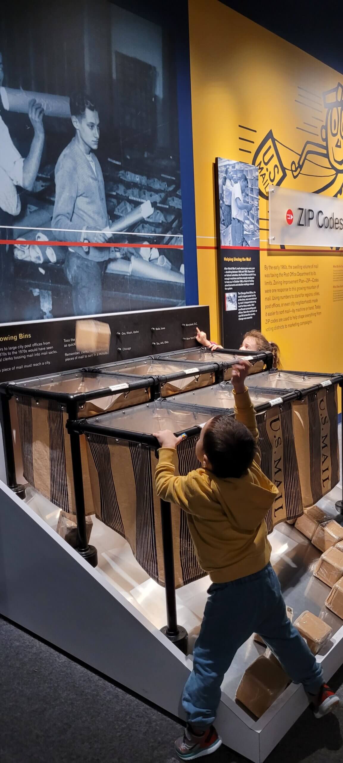 מסתבר שזו היתה החלטה מעולה! המוזיאון פשוט יפהפה! היה מרתק לראות את אוסף הבולים, לעקוב אחרי המעטפות, לעלות על משאית דואר, לראות איך היו אוספים וזורקים שקים של דואר ברכבת. שלחנו גלויה לארץ (שששש… לא לגלות, היא בדרך לסבתא). הילדים עצבו במחשב בול משלהם (הוא עדיין לא הגיע אלינו למייל) וגילינו גם באוסף הבולים את הבול העברי הראשון! במיצג תיבות הדואר זיהינו את הצבי הישראלי שלנו ואז הלכנו ביער שהלכו בו הדוורים שהשאירו בו סימנים.