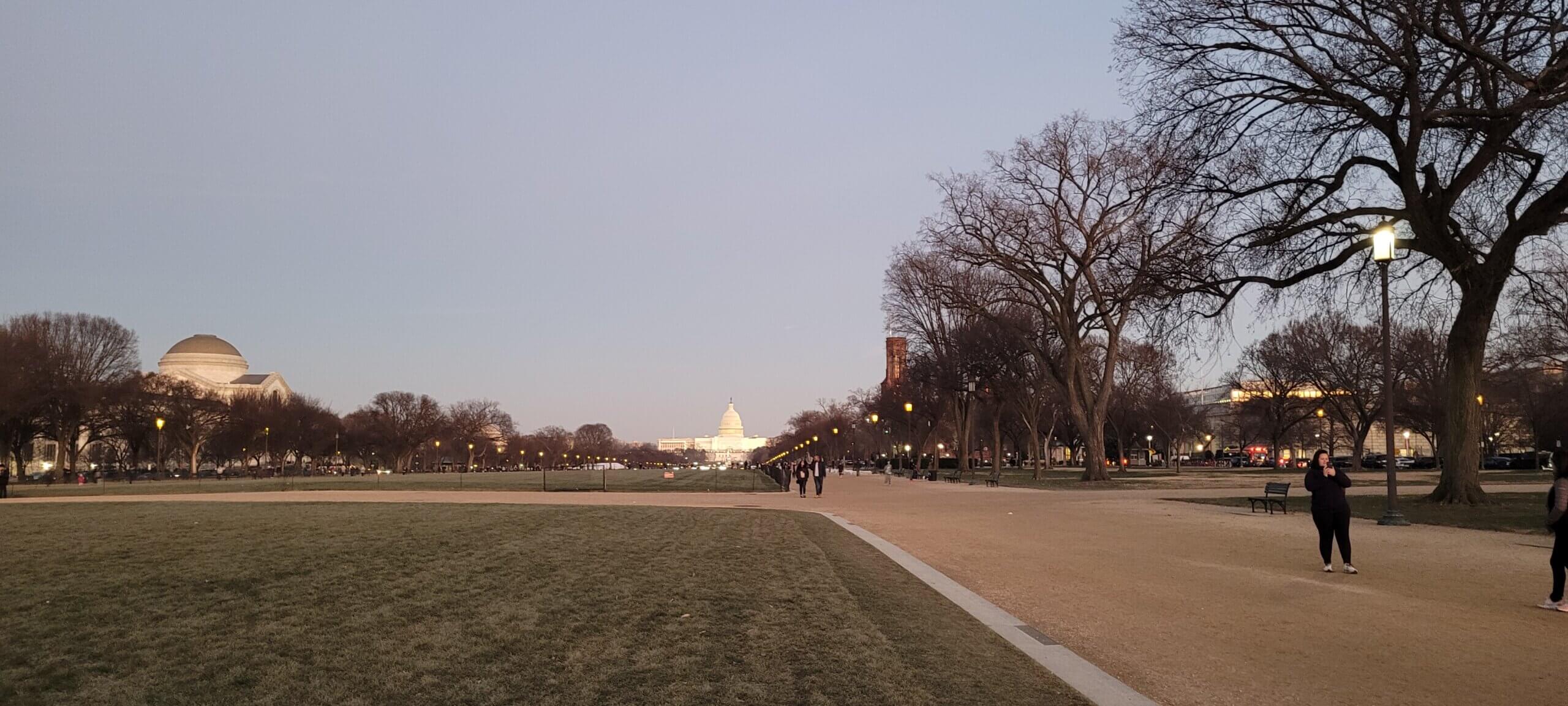 התחלנו ללכת, התחיל להיות קר אבל השמש ששקעה מלפנים והקפיטול שזהר מאחורינו יצרו מחזה מדהים! כמעט הגענו ליעד אבל החושך, הכפור והשעה שברו אותנו. לקחנו אובר (סוג של מונית) לרכב שלנו ומשם – למסעדה!